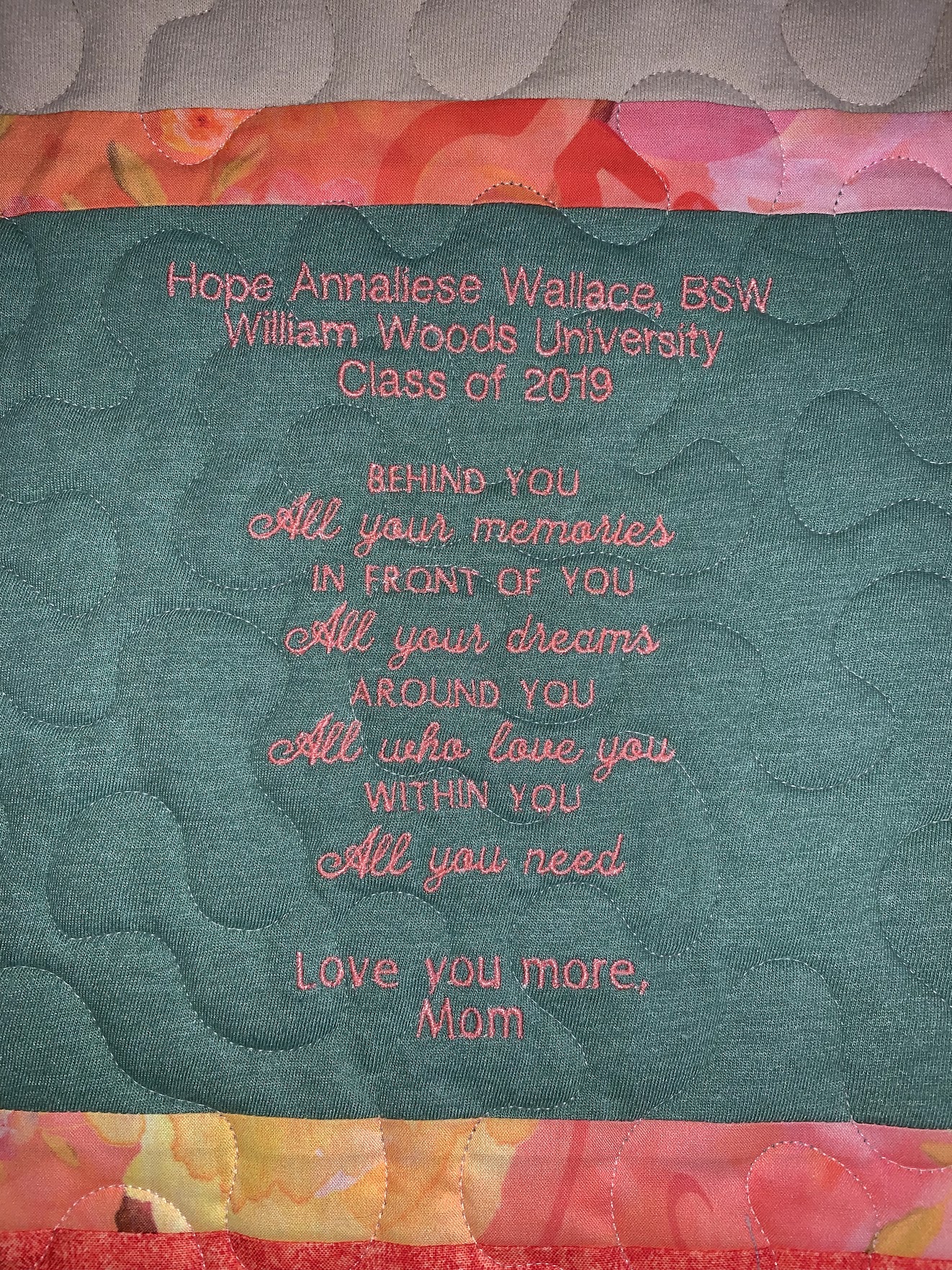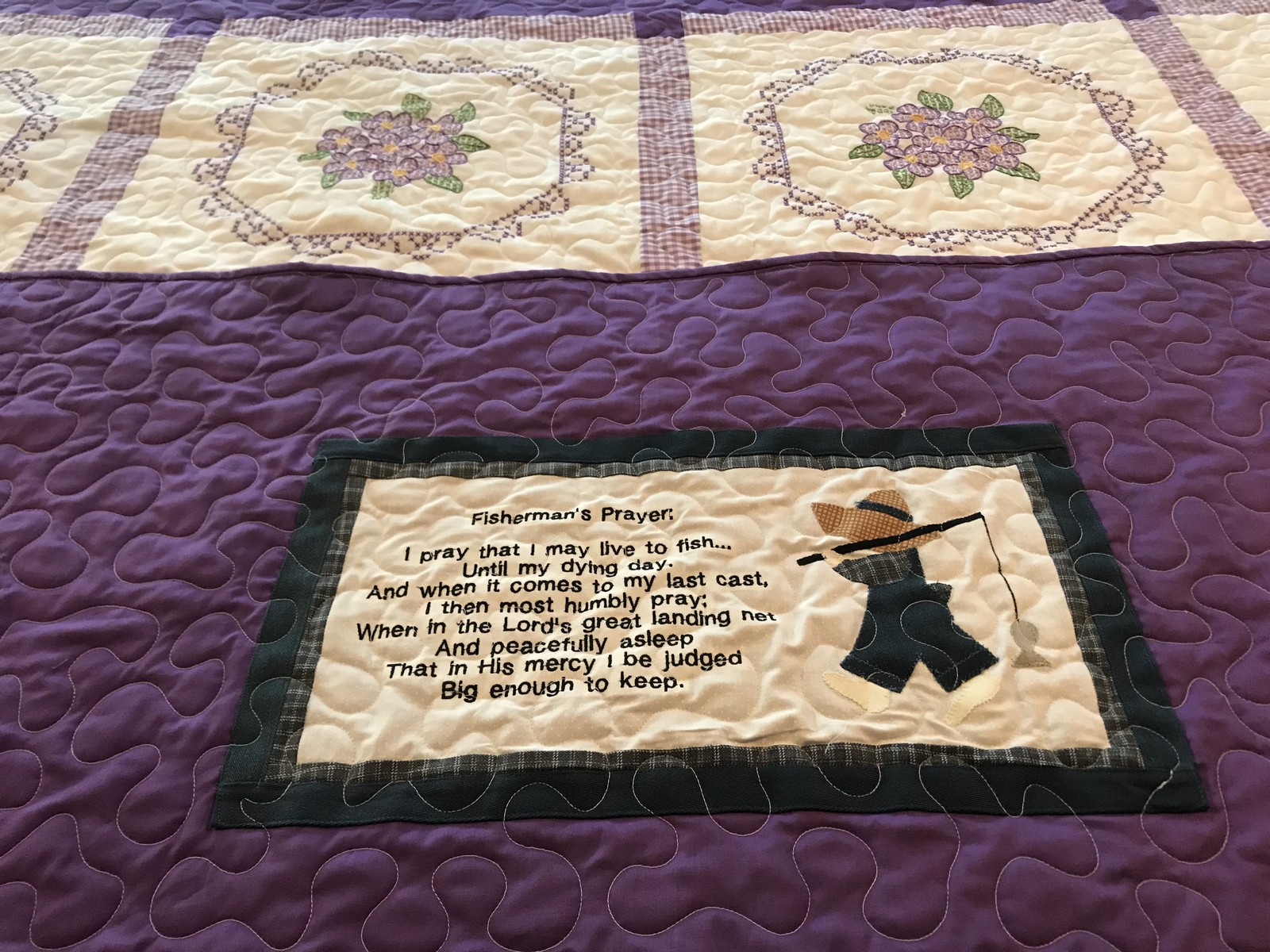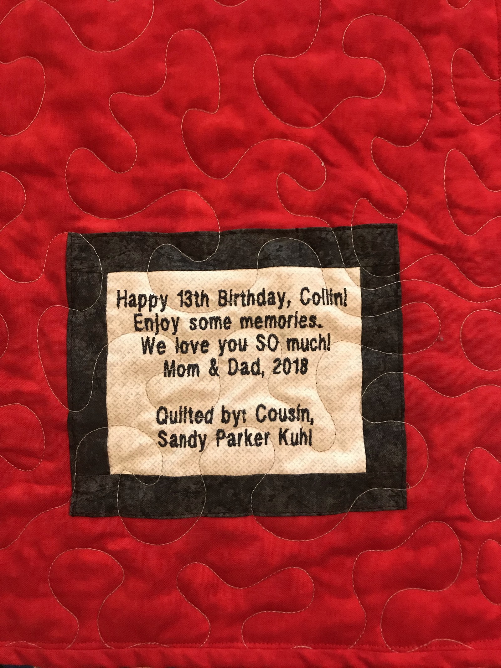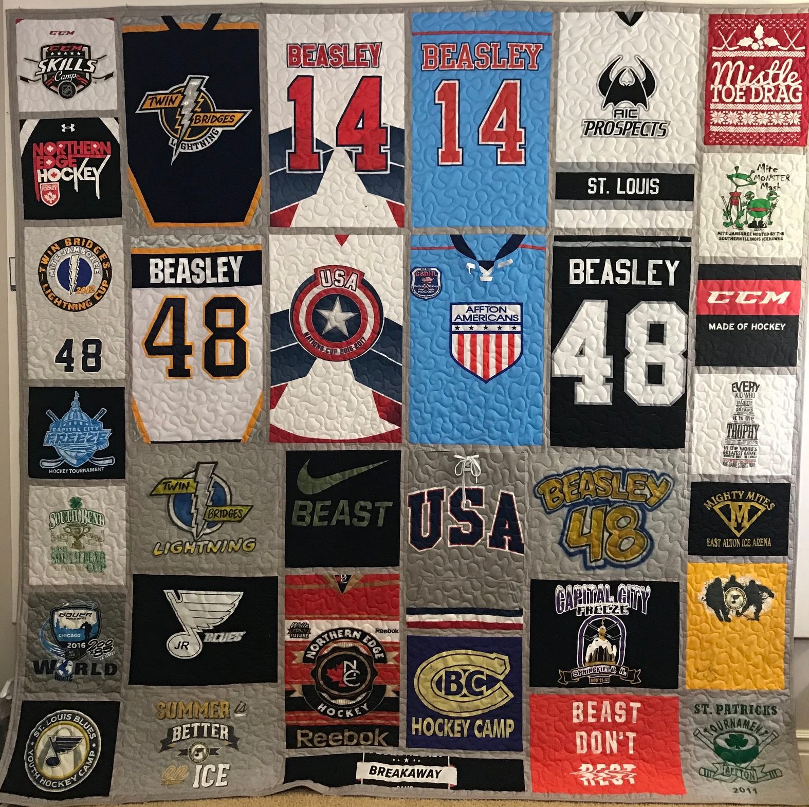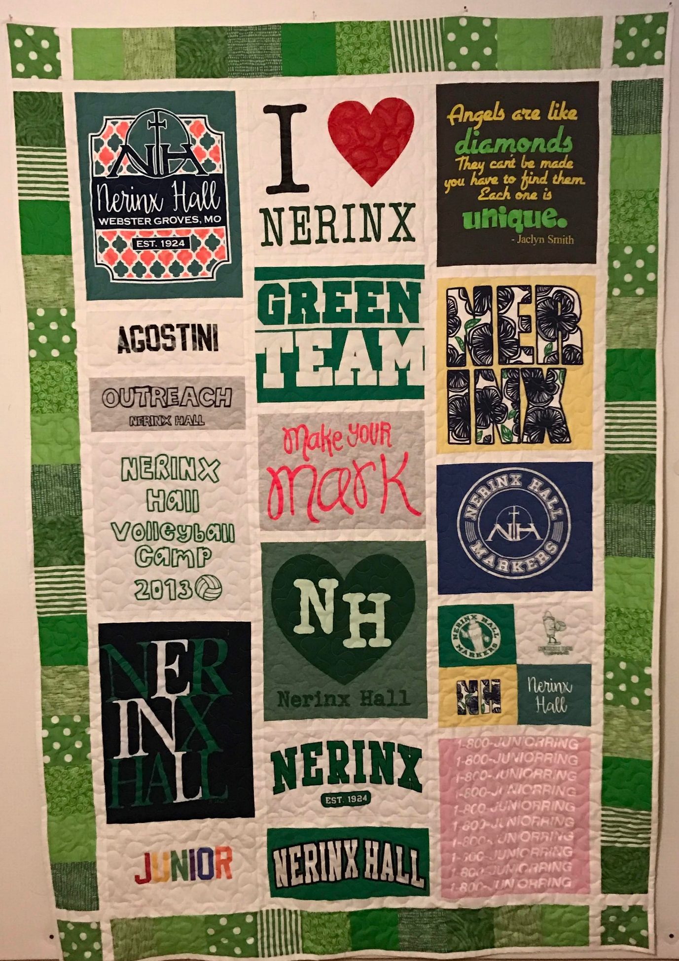 Quilt Gallery Quilt made from child’s clothing and artwork This has over 600 squares from children’s clothing! King Size Turtle design custome embroidery Infant baby clothes Back of pillow Uneven Rows Leaves for this family tree quilt are from the families clothes. Pillow made out of a t-shirt Back of Pillow Memory Quilt made from ties Made with hockey patches Wedding Dress